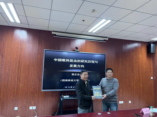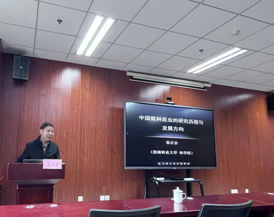 同日,我国著名的蚁类学专家、西南林业大学徐正会教授来我院作了“中国蚁科昆虫的研究历程与发展方向”的学术报告。徐正会教授主要从事森林昆虫学教学和蚁类学研究工作,先后完成了我国西南山地、喜马拉雅山、青藏高原等地蚂蚁区系与物种多样性研究工作,他的科研活动先后被新华社、人民日报、中国新闻社、中央电视台等媒体报道。