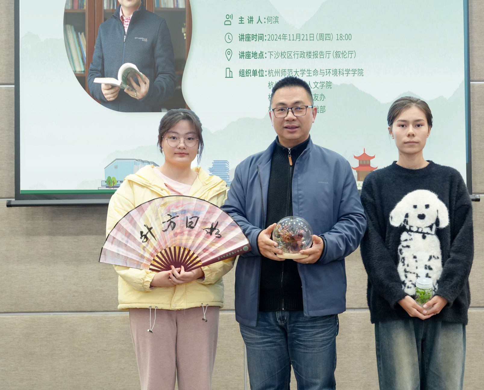 现场还进行了“EnCo-LIVE学生领导力素养提升计划”导师团成员及就业创业导师聘任仪式,无码影片 党委副书记王倩为何浩颁发聘书。学生代表为何浩送上了无码影片 同学们制作的“永生花”摆件、组培植物以及非遗漆扇。讲座后师生进行了集体合影留念。