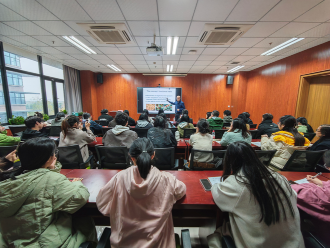 近日,我院在慎园15-313会议室举行了2024年第68-69期生科撷英讲坛,荷兰阿姆斯特丹自由大学Johannes H.C. Cornelissen教授、中国农业大学王军军教授应邀来我院为师生们分别作了题为“The Plant Size and Shape Spectrum and Ecosystem Functions”、“巨噬细胞介导肠道炎症的营养与微生物代谢机制”的学术报告,生物学和生态学学科师生踊跃参加,报告会会场座无虚席。