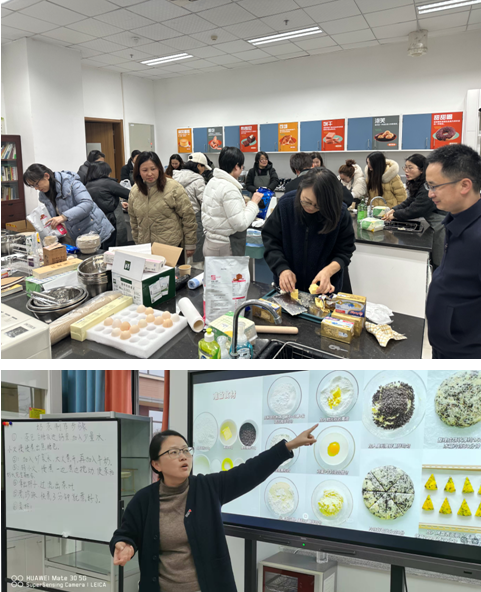 活动现场,周婷老师详细讲解了司康饼的制作步骤,从面粉的选择、配料的搭配,到面团的揉搓、成型,再到烤箱的温度与烤制时间的把控,每一个环节都讲解得十分细致。女教工们认真聆听,不时提出问题,现场互动热烈。在制作奶茶环节,周老师教大家如何煮茶、调配奶与茶的比例,以及添加不同辅料来打造独特口味。