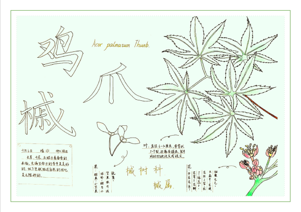 自然笔记属于物候学重要呈现形式之一。为了培养学生的观察能力,发现生活中的自然之美,鼓励学生在观察和记录过程中形成对植物生长等自然现象的独特感悟,增强与自然的联结,提升科学记录能力,引导学生感受自然、热爱自然,我院于2025年4月7日至4月9日开展生物科技节“我与植物共成长”自然笔记画展征集活动。经过作品筛选、评委打分,学院审核,共评选出10份优秀作品,现将获奖名单公布如下: