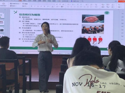 讲座过程中,陈老师通过与同学互动,模拟求职场景中的一些肢体礼仪等,以更加饱满立体的方式带领大家深入了解求职礼仪知识。