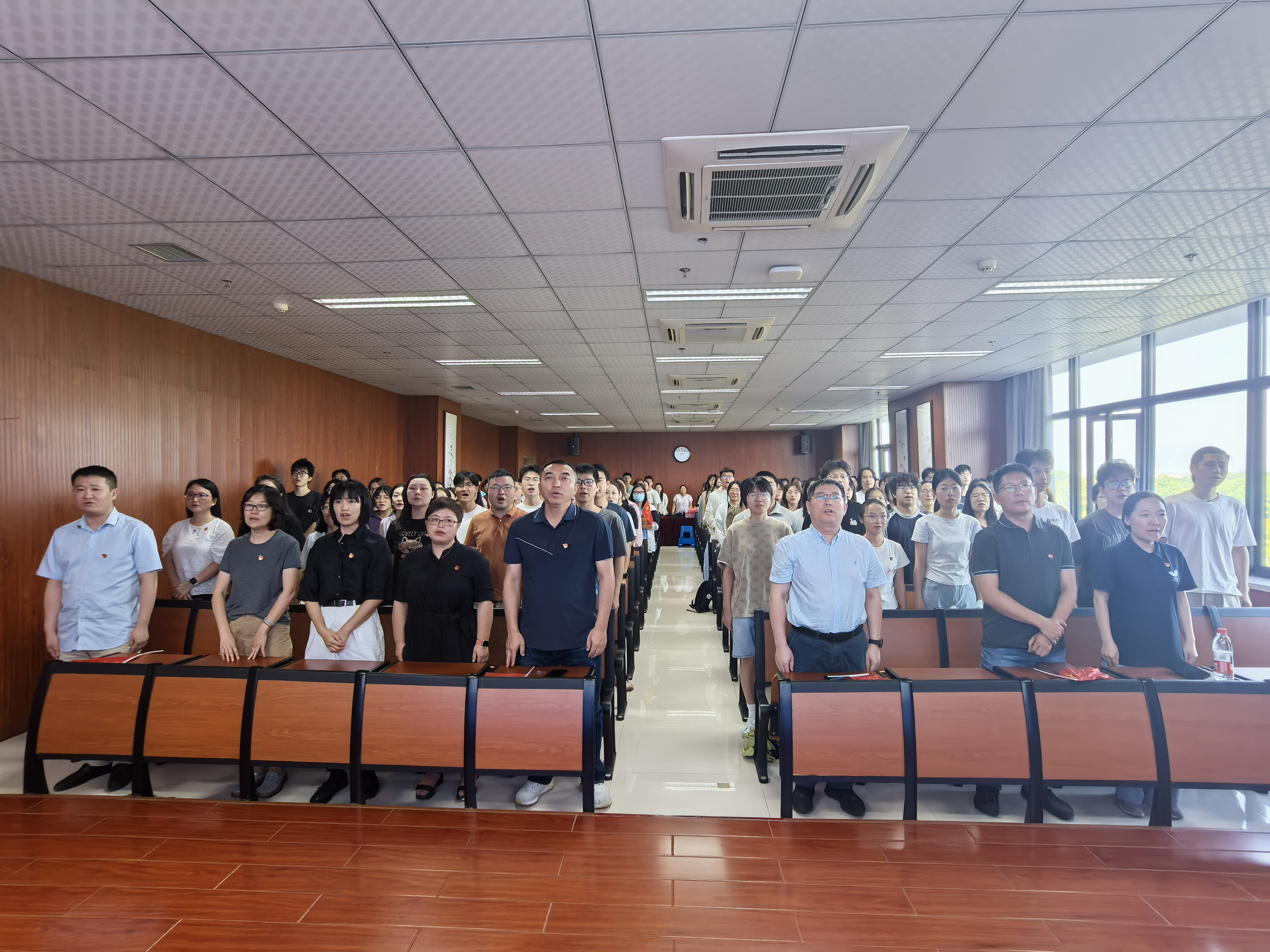 为深切缅怀革命先烈,弘扬伟大抗战精神,深入推进爱国主义教育,引导广大师生从历史中汲取前行力量,9月3日,我院组织师生代表在慎园15-309观看“纪念中国人民抗日战争暨世界反法西斯战争胜利80周年大会”现场直播。学院领导班子成员、各支部教师代表、在校学生集中观看。