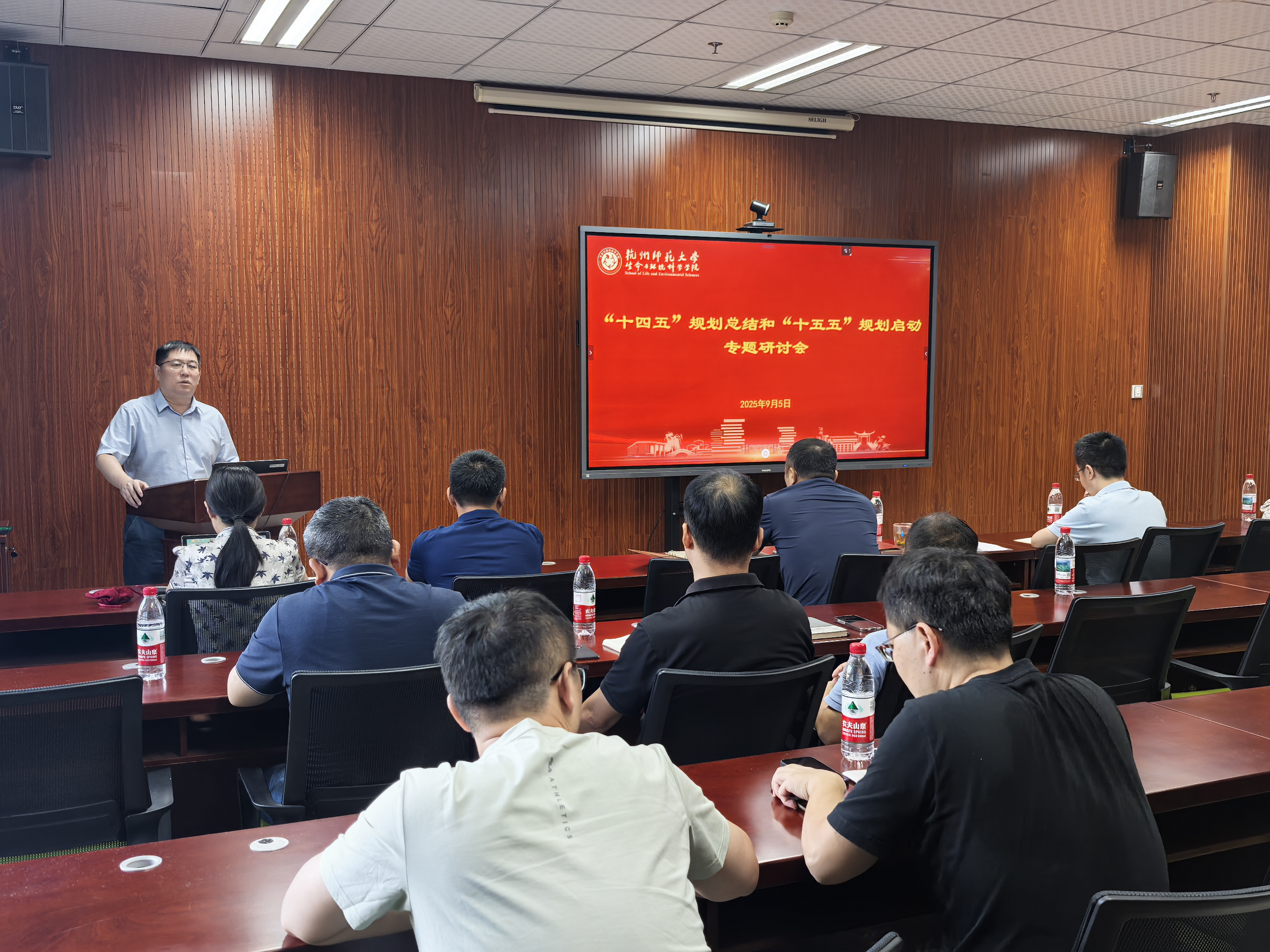 为系统总结学院“十四五”规划实施成效,科学谋划“十五五”发展蓝图,2025年9月5日,学院召开了“十四五”规划总结暨“十五五”规划动员专题研讨会。学院党政领导班子成员、各课题组组长、各系主任、各科室负责人和部分党支部书记代表等齐聚一堂,共商发展大计。会议由院长薛大伟主持。